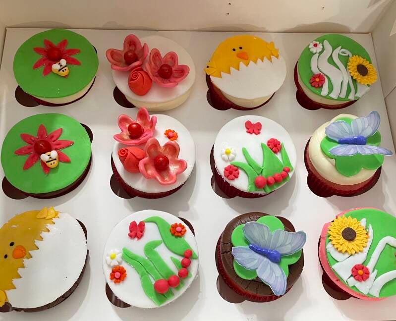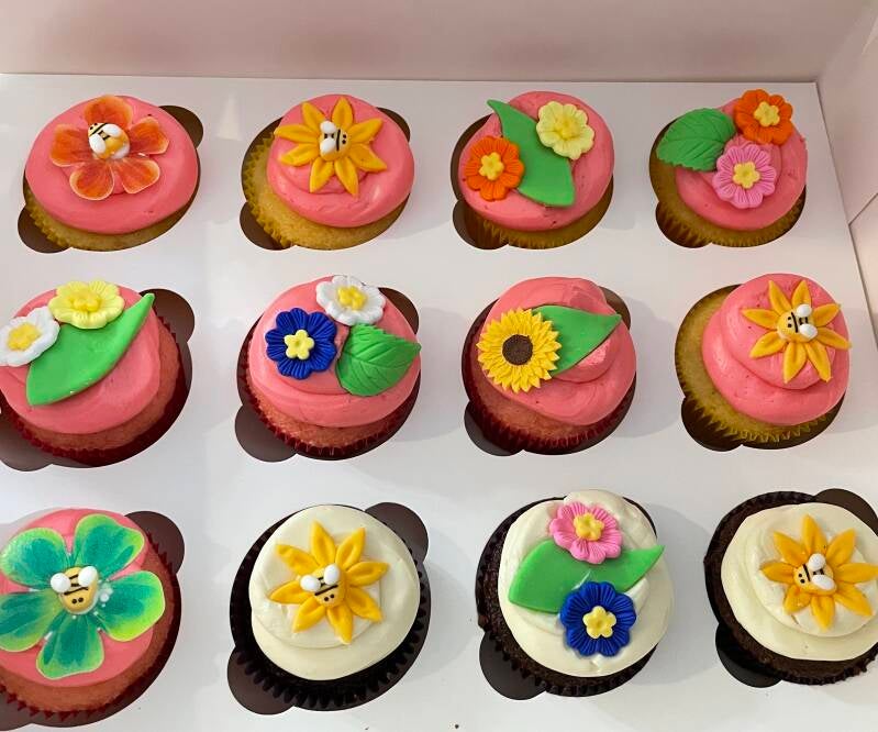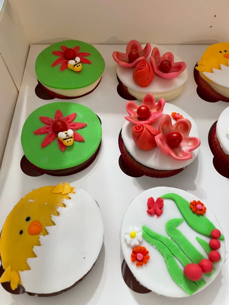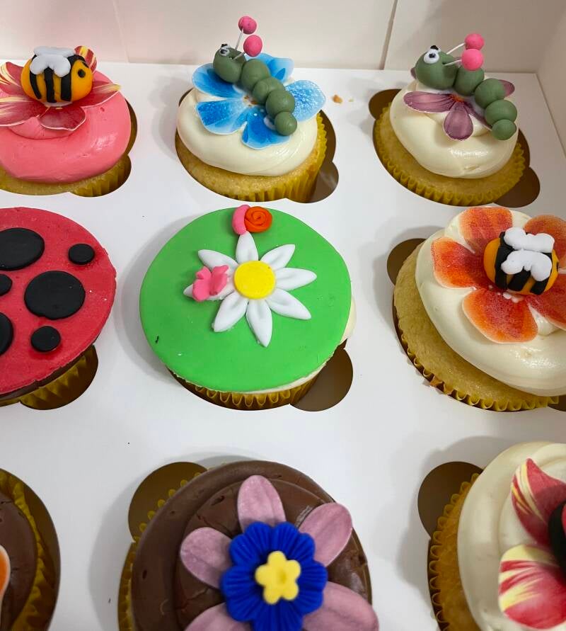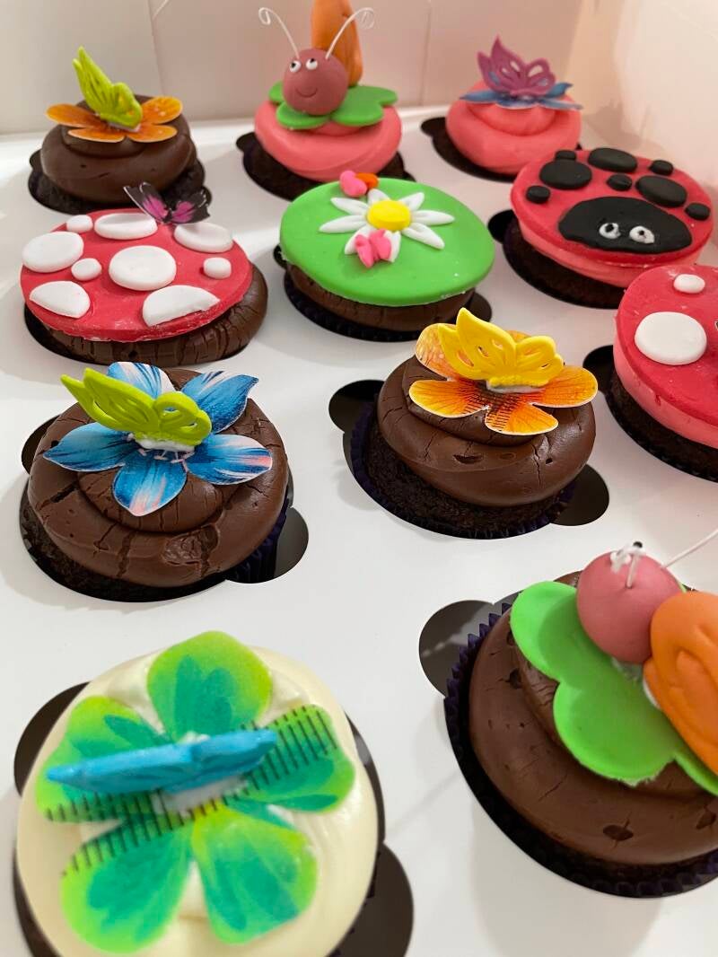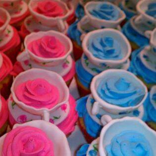 Chocolate and Vanilla Cupcakes with Buttercream frosting and HandPainted (food coloring) Fondant Tea Cups with royal icing roses